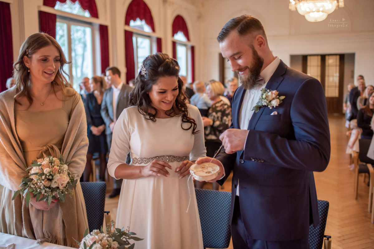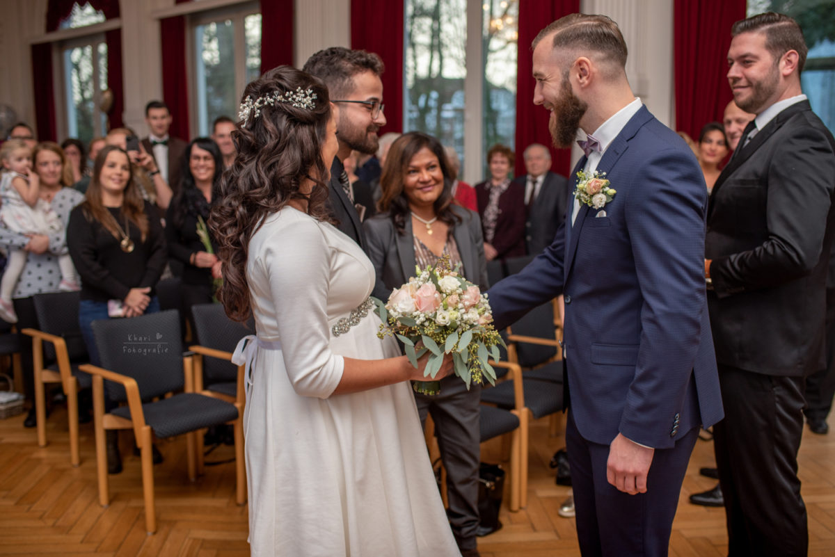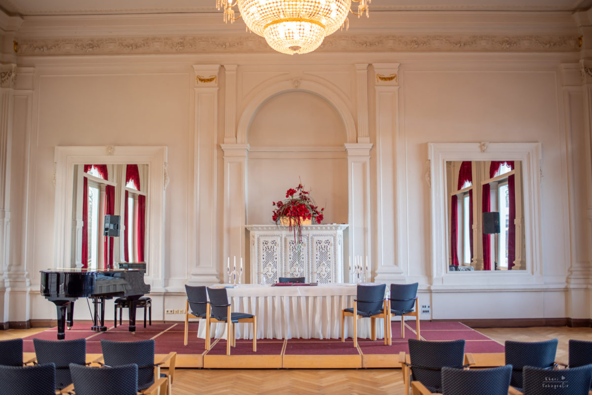 Die Trauung fand im mittlerweile vertrauten Spiegelsaal in Bad Zwischenahn statt. Der Spiegelsaal ist schön groß, hell und die Lage am Zwischenahner Meer ist perfekt. Kein Wunder also, dass eine Hochzeit dort sehr beliebt ist und ich freue mich immer da zu sein! Nach der Trauung wurde direkt im Saal ein Sektempfang gegeben. Die Gäste hatten einiges an Gebäck und Getränken mitgebracht für alle. Sogar die Sonne schien kräftig herein und die Stimmung war super fröhlich und entspannt. Es hat mir wie immer viel Spaß gemacht, mich unter die Menge zu mischen und Momente einzufangen. Zum Schutz der Privatsphäre gibt es hier davon aber nichts zu sehen.